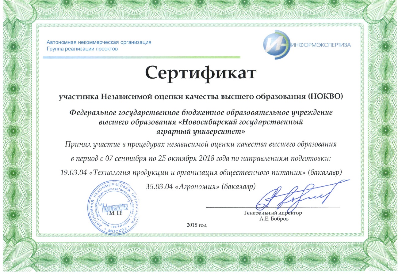Сертификаты участника Независимой оценки качества