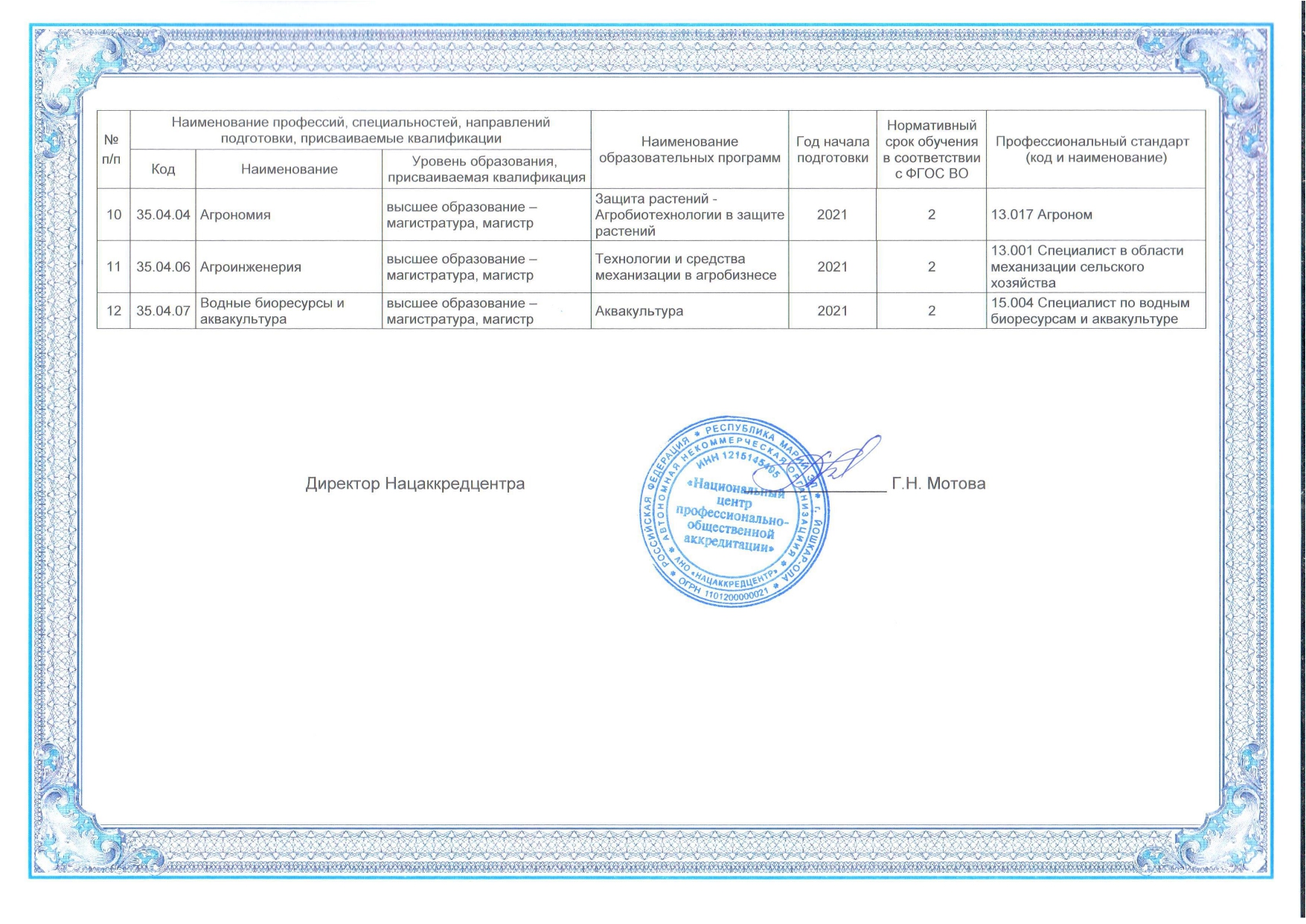 Ссылка на запись в "Реестре организаций, имеющих гос. аккредитацию" на сайте Рособрнадзора.от 13 июня 2018 года