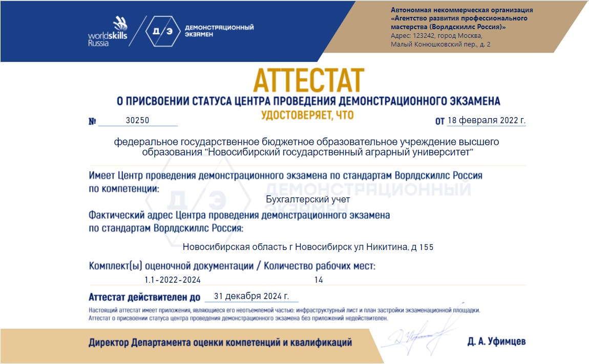 Аттестаты о присвоении статуса «Центра проведения демонстрационного экзамена»