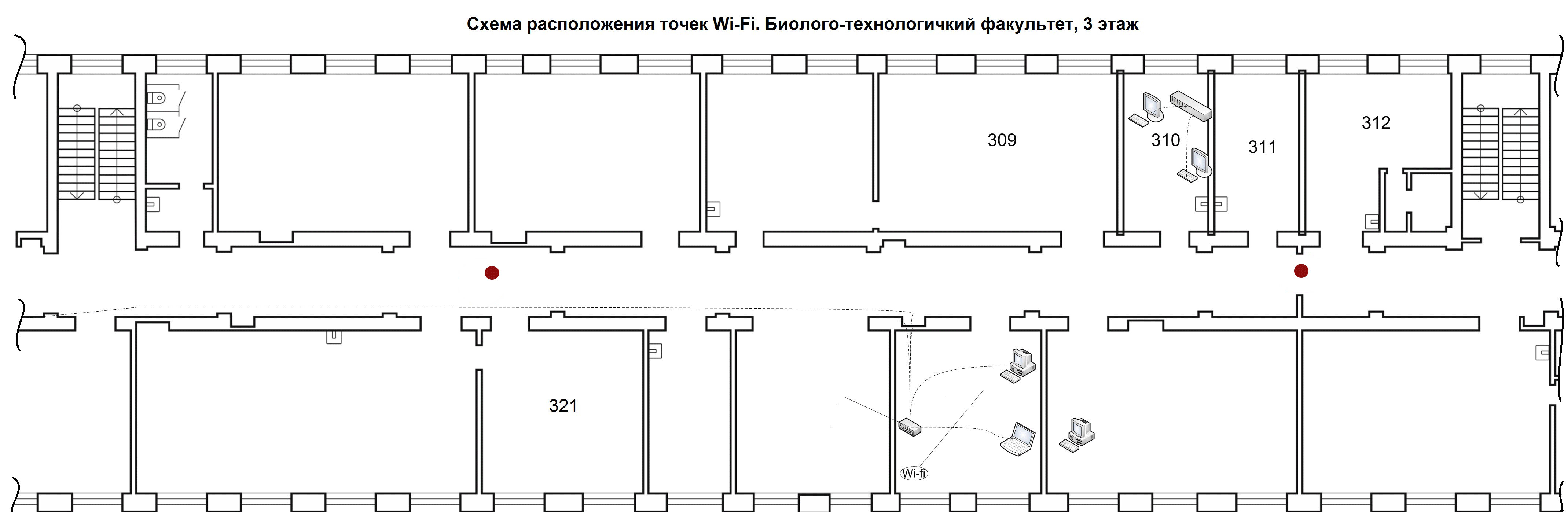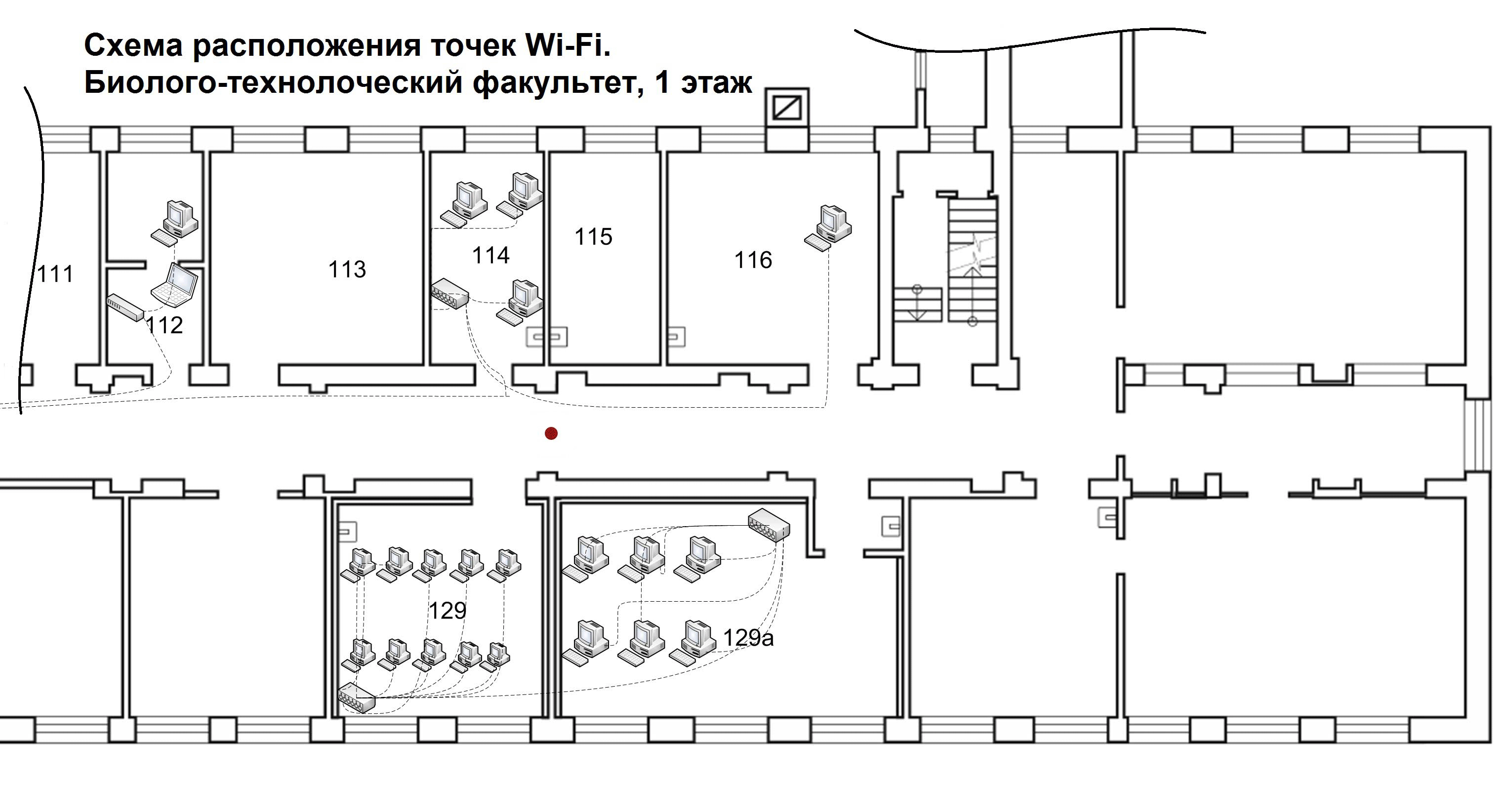 Биолого-технологический факультет, 3 этаж Лабораторный корпус, 1 этаж, точка Wi-Fi