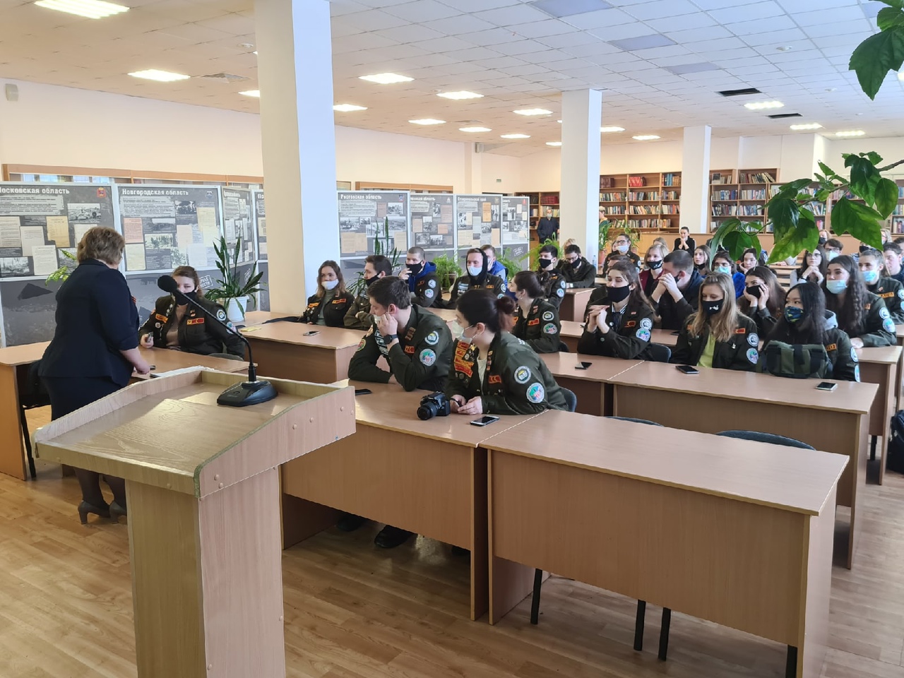 Первыми зрителями и слушателями стали Штаб Cтуденческих Отрядов Новосибирского ГАУ и Совет Обучающихся НГАУ, сотрудники университета, а так же приглашённые гости. Ведущей экскурсии по выставке стала Романькова Елена Анатольевна - директор библиотеки.