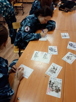 Студенты написали послания российским военным, которые сегодня находятся на территории Украины и участвуют в спецоперации. В своих посланиях они выразили слова благодарности всем тем, кто сейчас исполняет свой воинский долг, за чистое, мирное небо, высказали пожелания скорейшего освобождения украинской земли от нацистов и возвращения солдат домой.