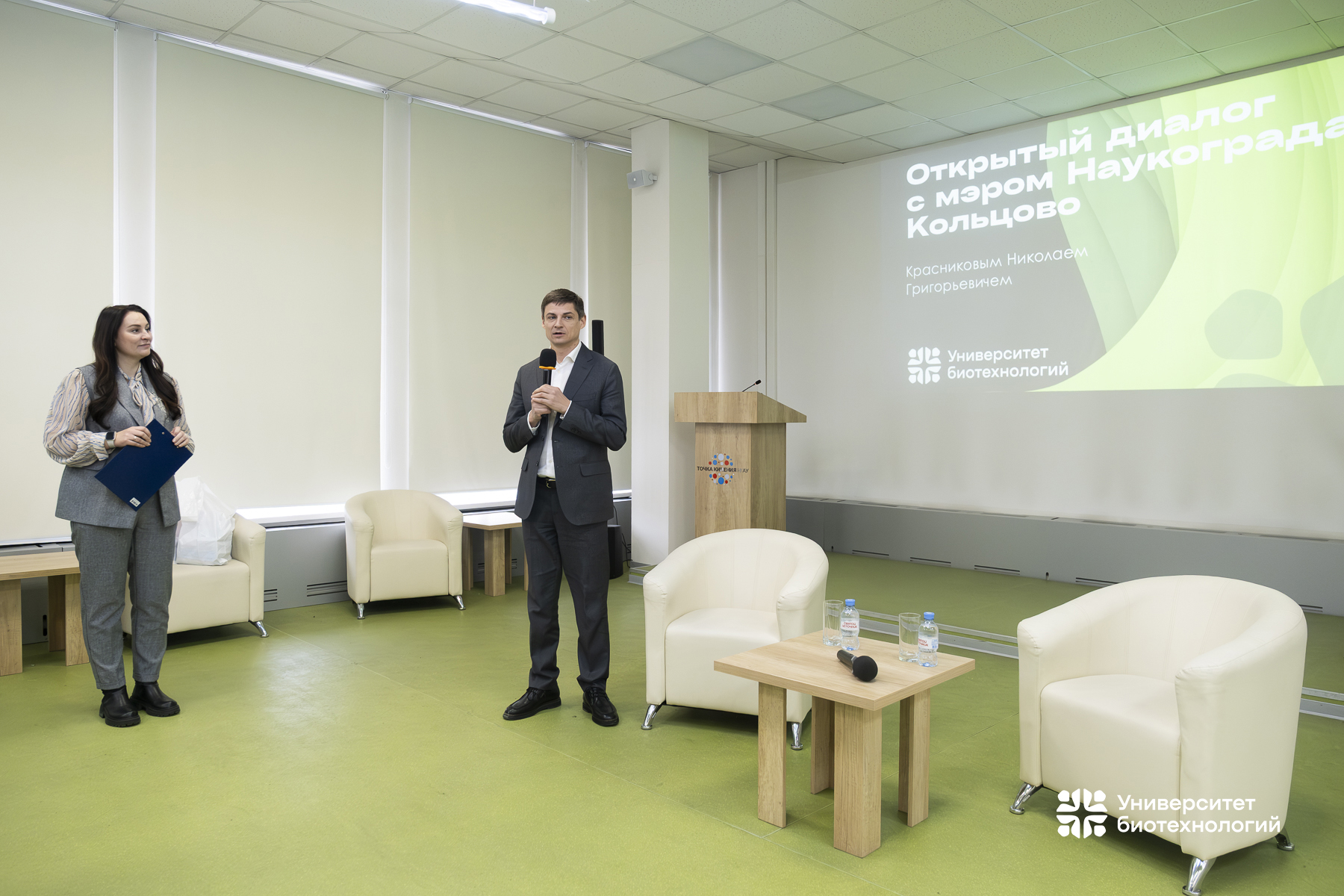 В конце рабочей недели Университет биотехнологий радушно встретил мэра Наукограда Кольцово Николая Григорьевича Красникова.